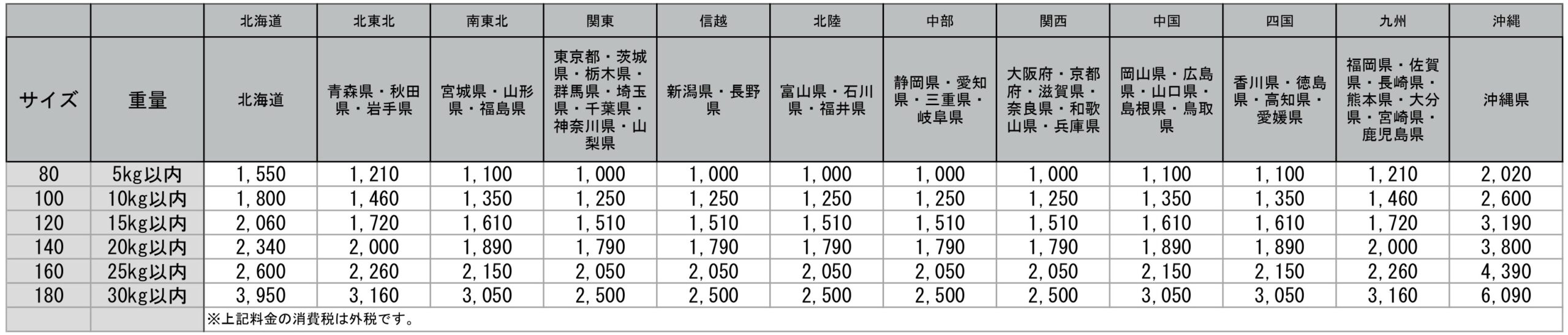 料金表・配送料